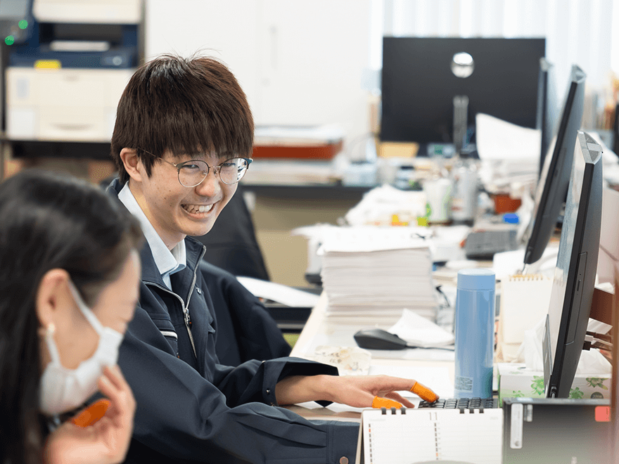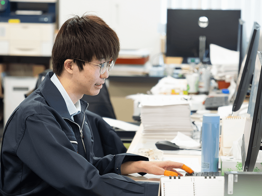 在庫チェックについて「デジタル化で効率化できるのでは?」と提案したところ、改善プロジェクトの取りまとめ役を任せられました。若手にも挑戦の機会を与えてくれる環境だと実感しています。