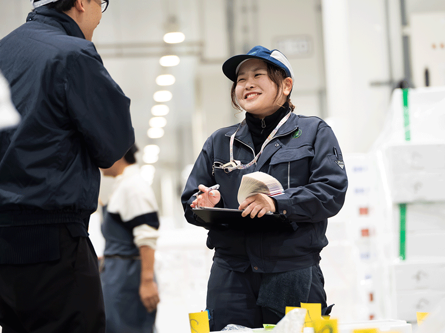 大学では水産学を学んでいたため、水産に関わる仕事を中心に就職活動をしていました。合同説明会で人事の方の話を聞き、日本で最も水産物が集まる豊洲で卸売の仕事に挑戦できることに魅力を感じました。また、会社のアットホームで温かい雰囲気が自分に合っていると感じ、入社を決めました。