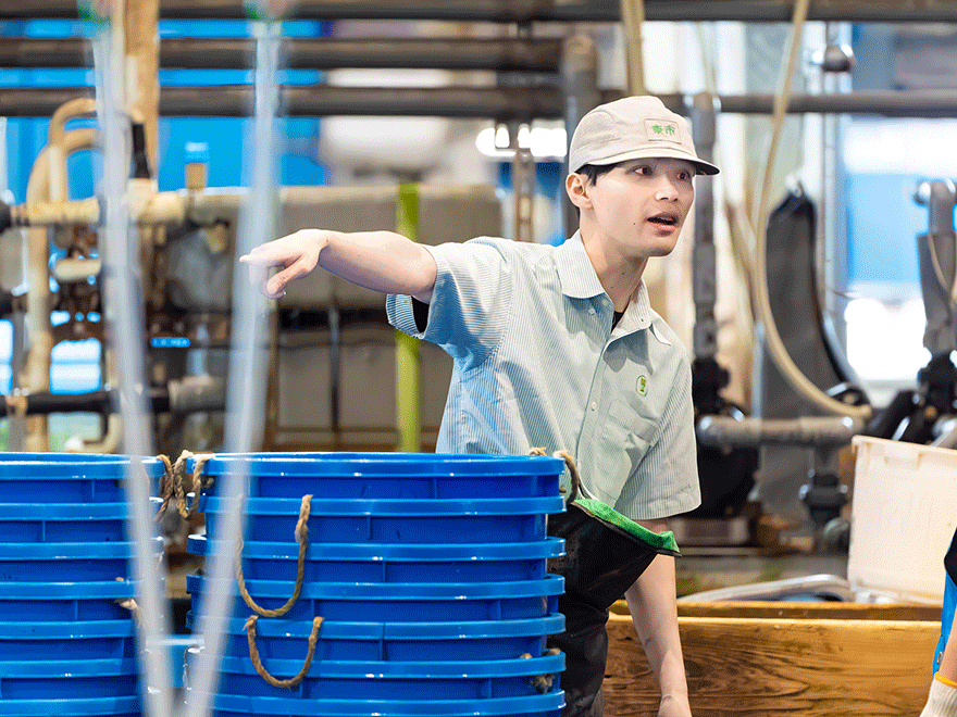 就活サイトで会社概要を見た際に、「魚のために早起きする人生、楽しいかもしれない」と感じたことがきっかけです。面接を通して会社の活気を強く感じ、「ここで働きたい」と思い入社を決めました。